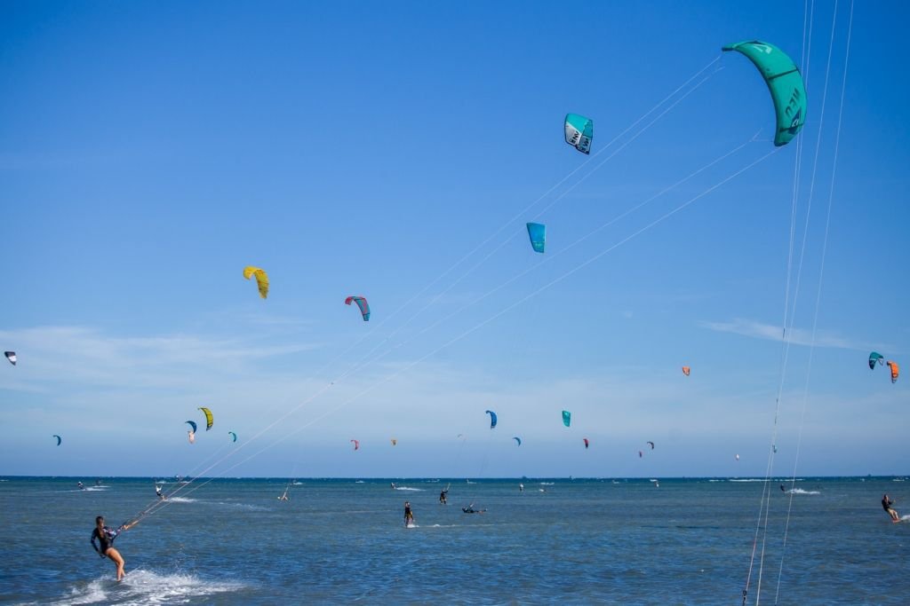 It’s easy to learn here! The spacious lagoon with flat-water and steady cross-on shore winds is perfect for beginners. Progression is much quicker in these conditions and most students are usually up riding in 3 days. Lessons start at $55 per hour. Intermediate kiters can also make huge progress here – learn to jump higher or master some new tricks!